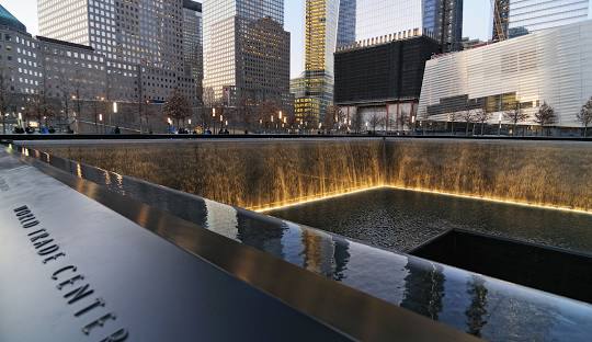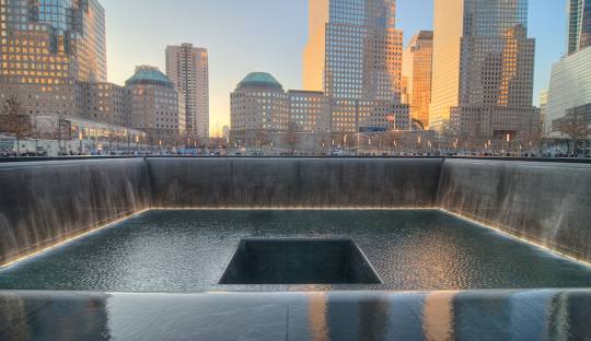 两座反思池各占地近一英亩,用于深刻缅怀在事件中逝去的生命。这两座反思池拥有北美最大的人工瀑布,并刻有近3000名遇难者的名字。参观具有历史意义的"幸存者楼梯",这座残存的楼梯曾经挽救了数百人的生命。在历史展览中,了解袭击事件的背景、发生在 9 月 11 日当天的故事,以及袭击事件的后果和持续影响。