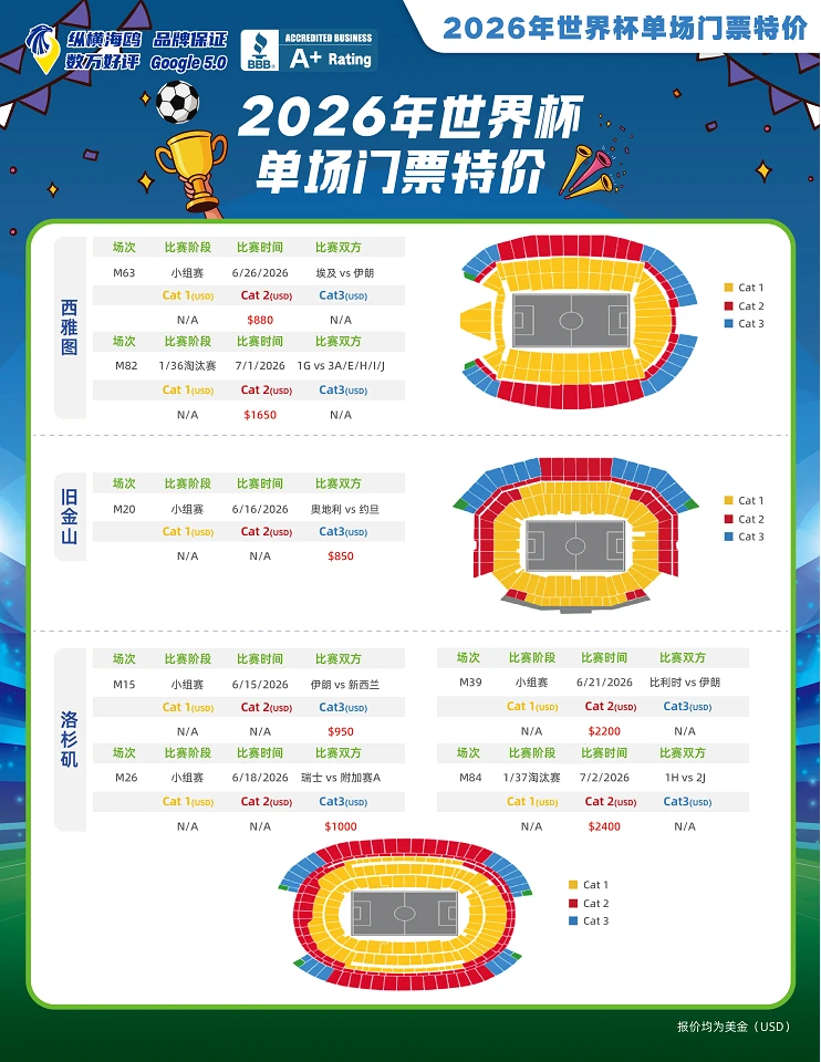 【票】2026年美加墨世界杯——洛杉矶站