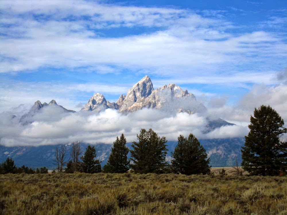 接着到达落基山脉中最著名的大提顿国家公园。大提顿拥有高耸入云的山峰和终年积雪的山顶,其中大提顿山脉被称赞为藏于美国的小瑞士,景色天高云阔,白雪皑皑,无数西部大片尽拍摄于此。