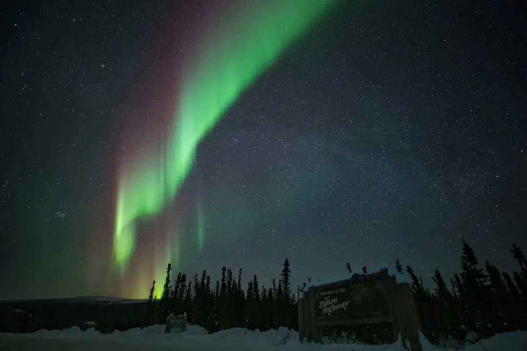 预计上午10:30-11:00出发,乘坐专业极地巴士沿阿拉斯加最偏远、最具挑战性的道路之一的道顿公路向北极圈进发。道顿公路全程414英里,是“世界十大死亡公路”之一,只有获得专业运营许可资格的车辆才允许进入道顿公路行驶。沿途可以一览北极原始荒野的苔原地貌风光,还有机会偶遇北美驯鹿、北极狐、狼、熊、麝香牛等野生动物。途径北美第三长河育空河,还将观赏到人类又一项伟大而艰难的创举——纵穿阿拉斯加南北的输油管道。最终您将亲临阿拉斯加北极圈(北纬66°33’)地标,并荣获一份【北极圈探险证书】,为您的旅行生涯留下深刻的记忆,亦为您的北极圈之旅画上完满的句点。幸运的话,在回程途中您将有机会与北极光不期而遇。预计于次日凌晨02:00 – 03:00回到费尔班克斯。如您在行程次日需要搭乘飞机离开,为避免发生误机风险,请您务必安排早上07:00之后离开的航班。