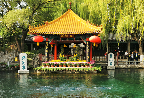 凭栏俯视「天下第一泉」水质澄澈、三泉喷涌的奇景,充分感受自然山水的另类风情