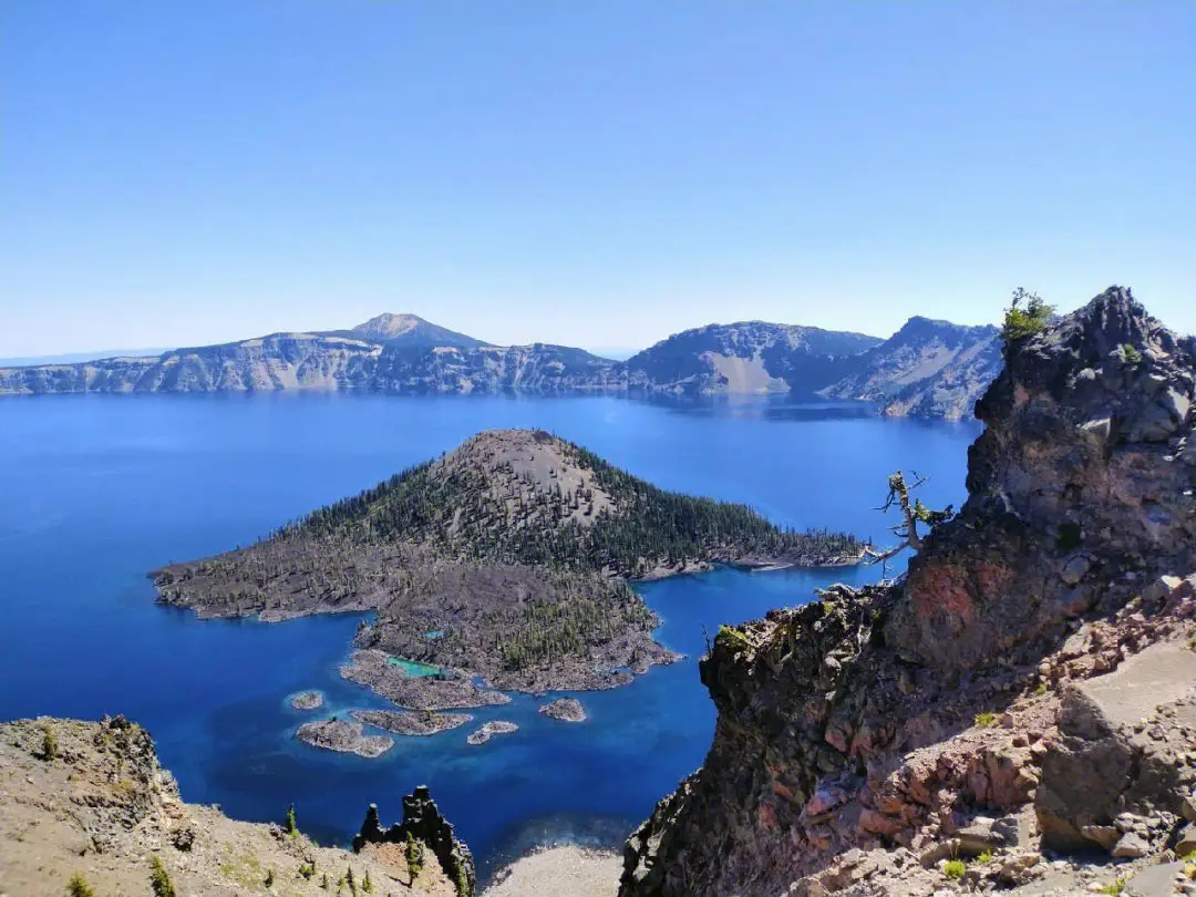 全美第五个古老的国家公园,也是世界最大的火山口湖琦丽湖,7700年前,马札马火山大爆发,在原本峰顶的地方留下一个盆地。几千年的雨雪将盆地填充,形成了湖。每年这里的降雪量超过十米,琦丽湖纯净的深蓝色是其它湖泊所无法相比的。它是美国最深的湖,深处近600米。世界上没有一个地方,同时结合了这么深,这么纯净,这么蓝的湖泊,纯粹得如仙子般不染尘埃。