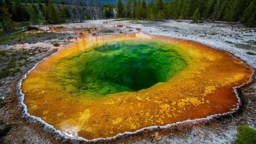游览不少于75分钟 如天气及交通允许的情况下,我们保证100%近距离俯视【黄石之眼,大棱镜拍摄最美大片】 上帝一定是在打翻调色盘的时候,把色彩,泼到了这里,才有了“大棱镜泉”。这是黄石公园中的大温泉,又称大虹彩温泉,也被称为时“黄石之眼”,同时也是美国位居第一的温泉,世界第三大的温泉。大稜镜温泉的美在于湖面的颜色随季节而改变,在夏季,显现橙色、红色,或黄色。但到了冬季,水体呈现深绿色。在大棱镜的平面你可能看不到它的全部面貌,为了不让我们的旅行有遗憾,我们会开到距离观景台最近的停车场,沿着小道上到山上的观景台,俯瞰大棱镜泉的神秘面容。拍摄最美黄石之眼。