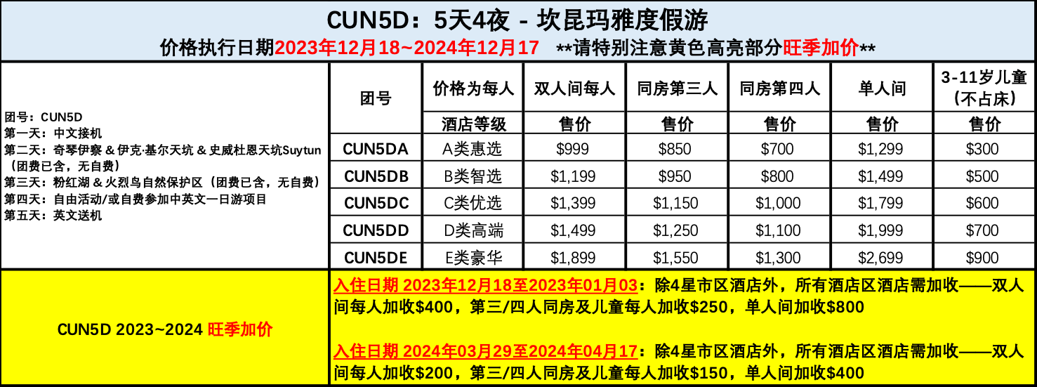 行程特色专职导游优质服务高品质16人以下*精品小团。多年坎昆生活专职中文导游,服务及讲解品质保证;16人以下*精品小团告别“走马观花”!