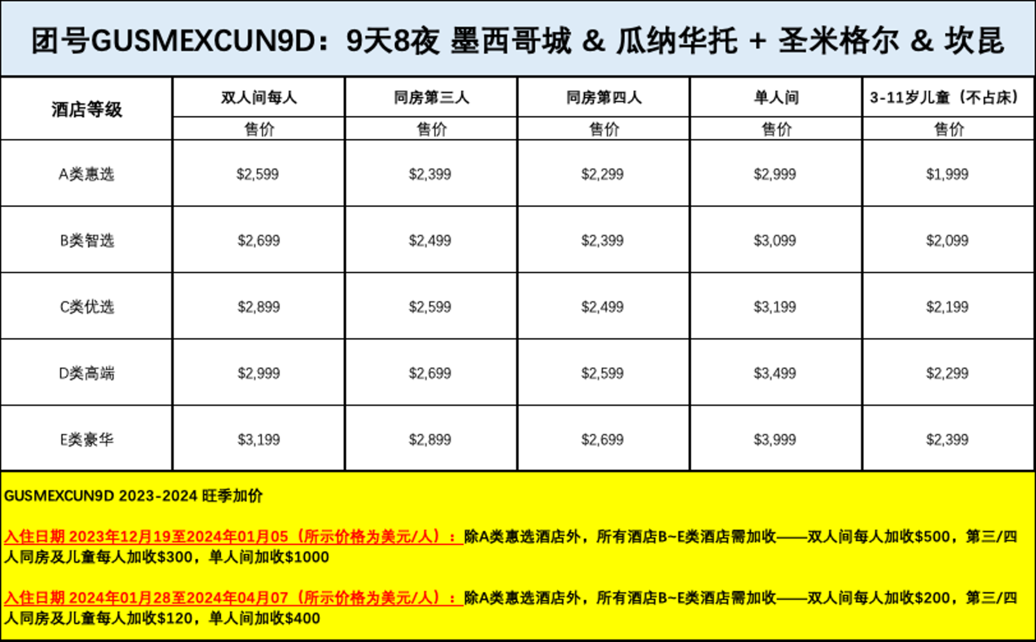坎昆可选从优选市区酒店到直通海滩的豪华全包式酒店五个酒店等级,想纯玩景点或是享受全包豪华酒店都能满足,丰俭由人!