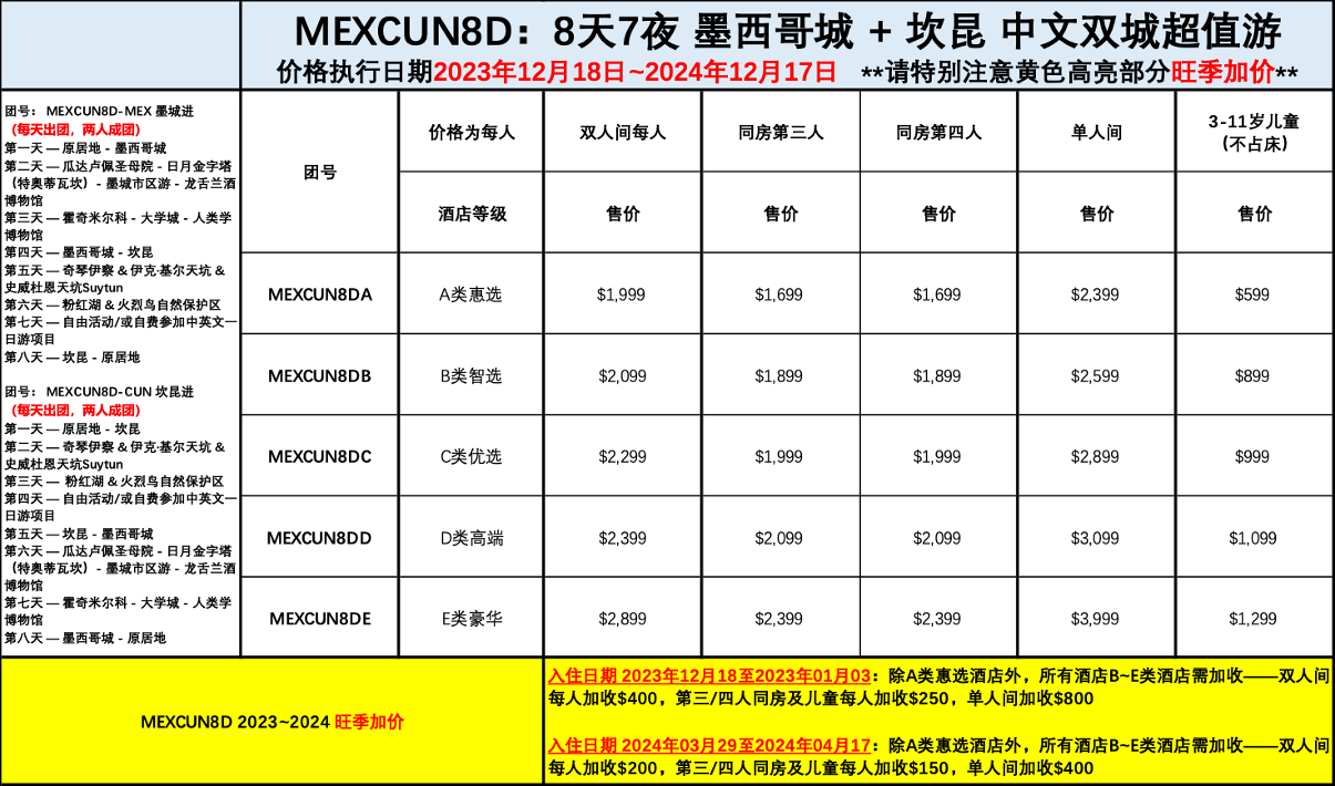 【中文 墨城+坎昆 双城超值系列】8天7夜 墨西哥城+坎昆