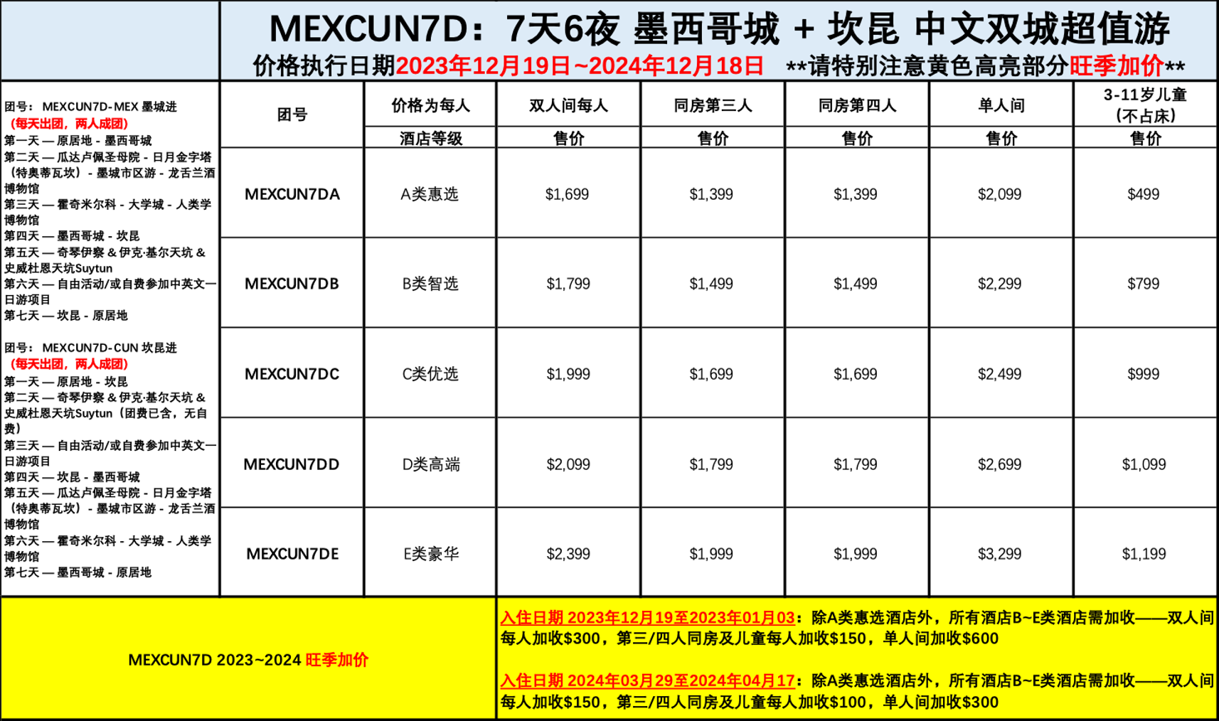 【中文 墨城+坎昆 双城超值系列】7天6夜 墨西哥城+坎昆
