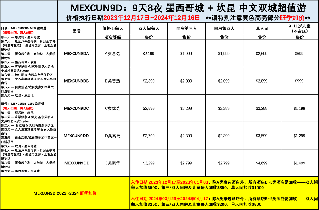 【中文 墨城+坎昆 双城超值系列】9天8夜 墨西哥城+坎昆